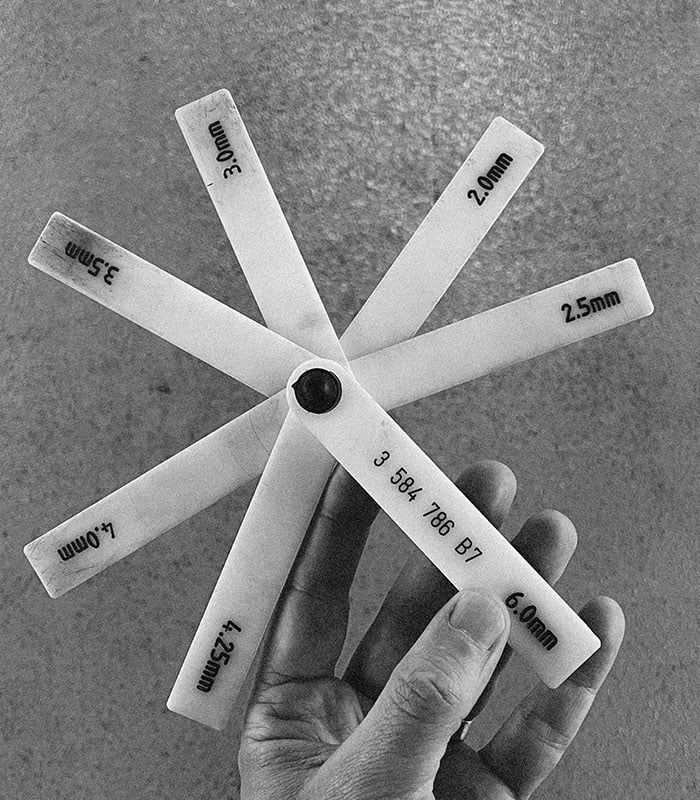 The collection is inspired by the production of the powerful BMW M cars, where precision and passion come together. The graphic shows a spaltmass, a tool used in the final stage of production to ensure absolute perfection.
